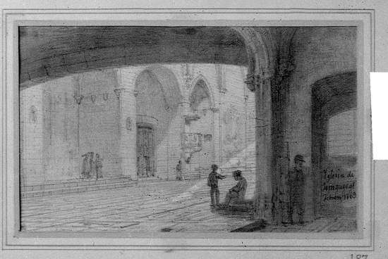 Inscripcions: “Antiguo templo de S. Miguel, demolido en Fº de 1869” (a tinta, a la part sup. esq.).