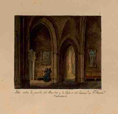 Inscripcions: «7» (a tinta, al damunt de l'ang. sup. dret del dibuix); «Sala entre la puerta del Claustro y la Iglesia del Convenº de Sn Francisº/Barcelona» (a tinta, a sota del dibuix) (lletra petita).