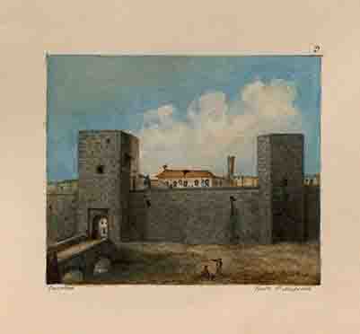 Inscripcions: «9» (a tinta, al damunt de l'ang. sup. dret del dibuix); «Barcelona» (a tinta, a sota de la part esq. del dibuix); «Puerta Sª Madrona» (a tinta, a sota de la part dreta del dibuix) (lletra petita).