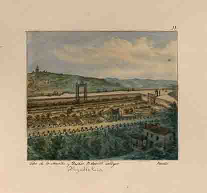Inscripcions: «11» (a tinta, al damunt de l'ang. sup. dret del dibuix); «Vista de la Muralla y Jardín Botánico antiguo (lletra petita)/Hoy Calle Cera (lletra gran)» (a tinta, a sota de la part esq. del dibuix); «Barcelona» (a tinta, a sota…