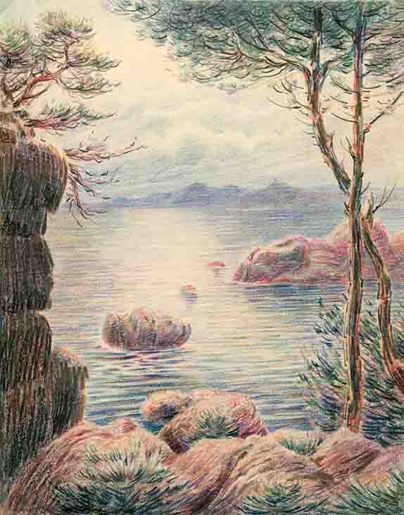 Observacions: Per la seva semblança amb el dibuix núm. d’inv. 5339 D hem considerat que aquest dibuix, que no en té cap inscripció, pot representar també l’estany de la Llosa. És el mateix cas dels dibuixos núm. d’inv. 5342 D i 5343 D. Muntat sobre un altre paper de major mida. Es troba a dins d’una carpeta de paper amb el rètol, a tinta: «PIRINEO/(del Pº Gracia 76.)». Segons la informació aportada per Leopoldo Gil Nebot, els dibuixos van ser realitzats pel seu oncle, l’arquitecte Francesc de P. Nebot, al període en què va estar amagat a conseqüència dels esdeveniments polítics entre els anys 1937 i 1938. La majoria dels paisatges són còpies, acolorides per invenció de l’autor, de les fotografies a b/n dels diferents volums de l’«Àlbum Meravella» (Llibreria Catalonia, Barcelona, 1927-1936), dedicats a les comarques pirinenques, a les catalanes i a Andorra.