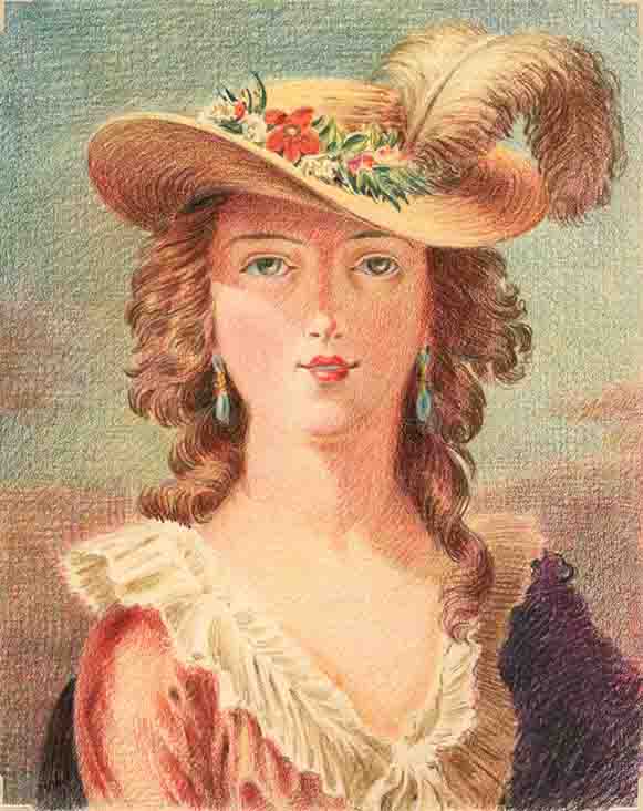 Observacions: Muntat sobre un altre paper de major mida. Segons la informació aportada per Leopoldo Gil Nebot, els dibuixos van ser realitzats pel seu oncle, l’arquitecte Francesc de P. Nebot, al període en què va estar amagat a conseqüència dels esdeveniments polítics entre els anys 1937 i 1938. Aquest dibuix forma part dels 33 dibuixos que representen còpies de figures i retrats de pintures famoses.