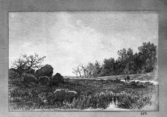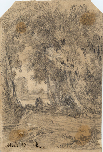 Signatura: “R.” (a tinta, a la part inf. esq., a continuació de la inscripció).