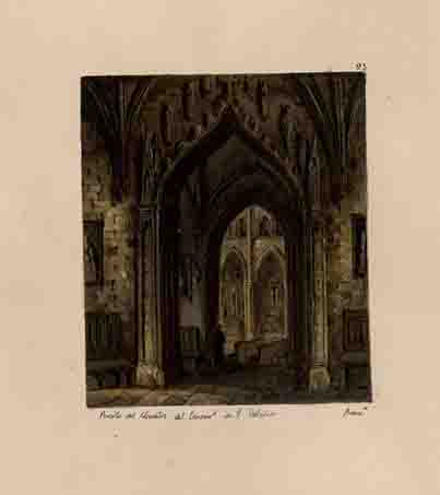 Inscripcions: «93» (a tinta, al damunt de l'ang. sup. dret del dibuix); «Puerta del Claustro del Convenº de Sª Catalina» (a tinta, a sota de la part esq. del dibuix); «Barceª» (a tinta, a sota de la part dreta del dibuix)…