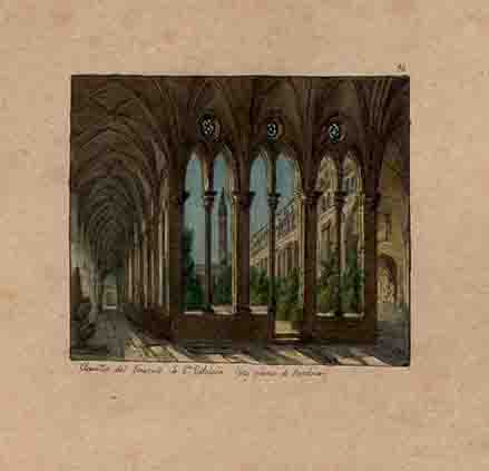 Inscripcions: «97» (a tinta, al damunt de l'ang. sup. dret del dibuix); «Galeria del Claustro del Convento de Sª Catalina» (a tinta, a sota del dibuix) (lletra petita).