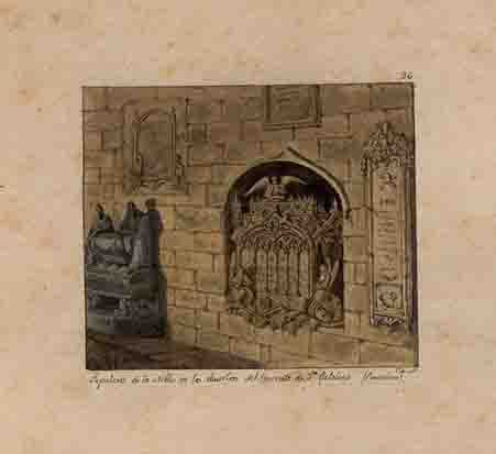 Inscripcions: «96» (a tinta, al damunt de l'ang. sup. dret del dibuix); «Sepulcros de los Nobles en los claustros del Convento de Sª Catalina (Barcelona)» (a tinta, a sota…