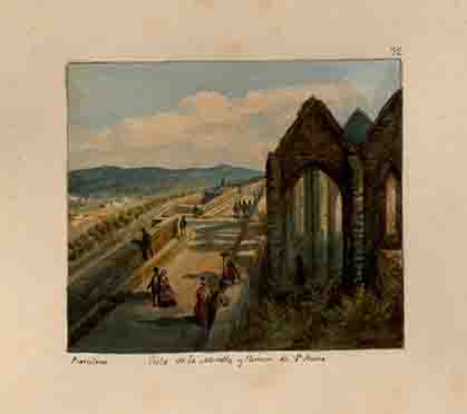 Inscripcions: «42» (a tinta, al damunt de l'ang. sup. dret del dibuix); «Barcelª» (a tinta, a sota de la part esq. del dibuix); «Sn Pedro de las Puellas» (a tinta, a sota de la part central del dibuix) (lletra petita).