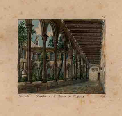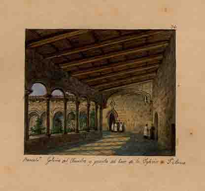 Inscripcions: «36» (a tinta, al damunt de l'ang. sup. dret del dibuix); «Barceloª Galeria del Claustro y puerta del Coro de la Iglesia de Sª Anna» (a tinta, a sota del dibuix) (lletra petita).