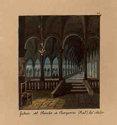 Inscripcions: «38» (a tinta, al damunt de l'ang. sup. dret del dibuix); «Galeria del Claustro de Junqueras (Barnª) Copª Mosteirin» (a tinta, a sota del dibuix) (lletra petita).
