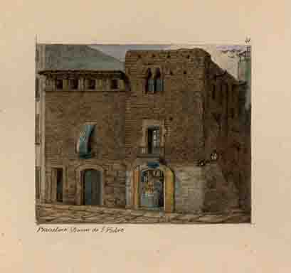 Inscripcions: «41» (a tinta, al damunt de l'ang. sup. dret del dibuix); «Barcelona. Basas de S Pedro» (a tinta, a sota del dibuix) (lletra petita).