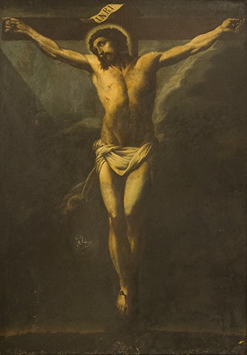 Observacions: Va estar dipositat al MFMB, on va tenir el número d’inventari S-754, fins que va tornar a l’Acadèmia el 29 de setembre del 2009. En mal estat de conservació. Al Museu Marès de Montblanc hi ha una còpia vuitcentista d’aquest Crist, de mida un tant més gran (1,71 x 1,24), amb el número de catàleg 23. El marc que tenia originàriament aquesta pintura va passar-se, ja en el segle XX, al retrat d’Isabel II de Jaume Batlle (núm. d’inv. 229).