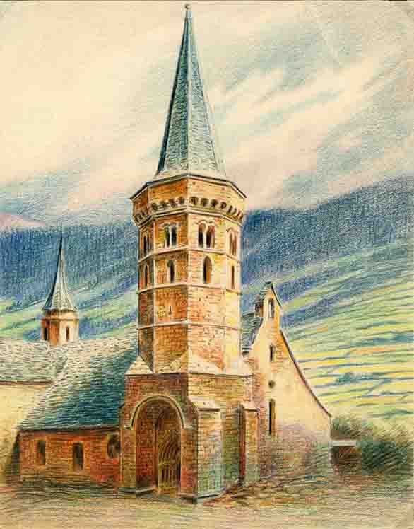 Inscripcions: “Viella-Iglesia” (a llapis, al dors); al dors de la cartolina suport, a tinta: “IGLESIA-VIELLA”; segell d’inventari de l’obra de Francesc de Paula Nebot (al dors).