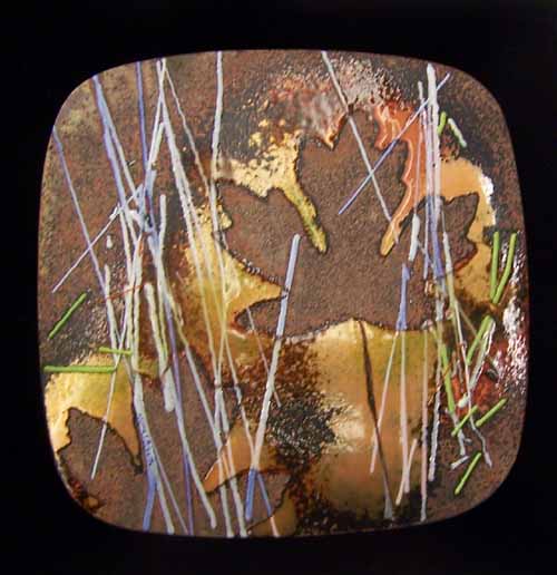 Signatura: “Núria L. Ribalta” (a la part inferior dreta amb esmalt blau). Procedència: Lliurat a l’Acadèmia per l’Escola Superior de Disseny i Art, Llotja, com a felicitació nadalenca. Data ingrés: 19 de desembre de 2007. Observacions: La placa està enganxada en una capsa.