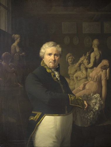 Observacions: El retratat (1771-1855), gran escultor neoclàssic català, va ser professor d’escultura de l’Escola de Nobles Arts de Barcelona des de 1816 i director d’aquesta àrea des de 1819. Al darrere de la seva figura hi ha representades diverses escultures seves: la Lucrècia morta, Aquil·les ferit, Un almogàver venç un soldat francès i el bust del Laocoont, entre altres. Encara que considerat com un dels més grans escultors neoclàssics, les seves escultures mostren certs trets d’un romanticisme incipient.