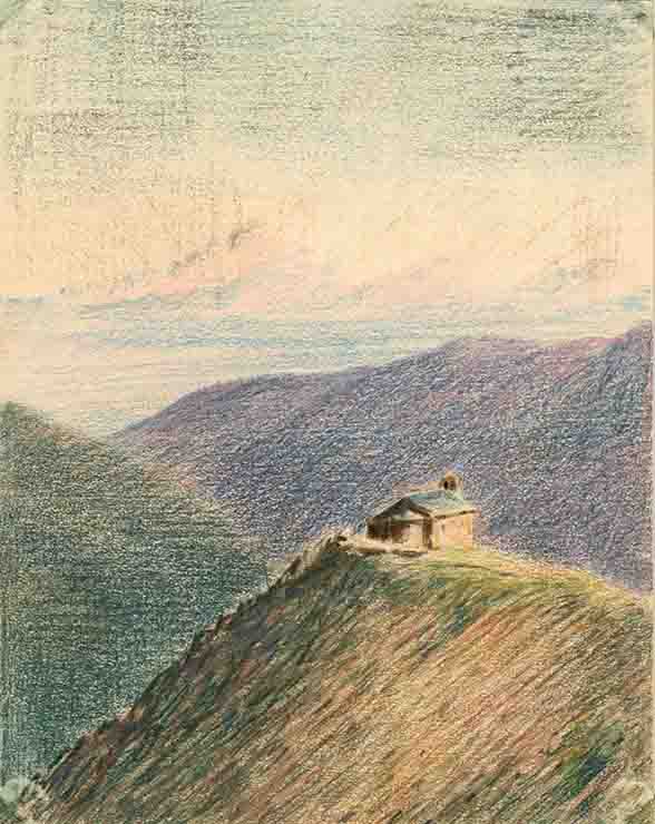 Observacions: Muntat sobre un altre paper de major mida, que està enganxat, a la vegada, a una cartolina marró més gran (42 x 31 cm). Segons la informació aportada per Leopoldo Gil Nebot, els dibuixos van ser realitzats pel seu oncle, l’arquitecte Francesc de P. Nebot, al període en què va estar amagat a conseqüència dels esdeveniments polítics entre els anys 1937 i 1938. La majoria dels paisatges són còpies, acolorides per invenció de l’autor, de les fotografies a b/n dels diferents volums de l’«Àlbum Meravella» (Llibreria Catalonia, Barcelona, 1927-1936), dedicats a les comarques pirinenques, a les catalanes i a Andorra.