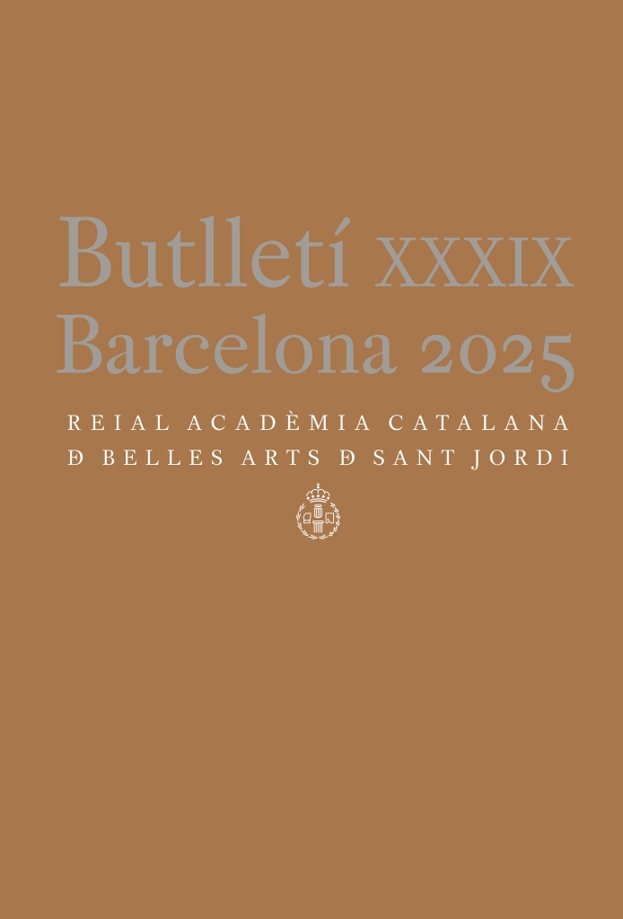 Butlletí XXXIX. Barcelona 2025. (398 pàgs., ils., 27 cm.). 20,00 € (Inclou texts de Nora Ancarola, Núria Aragonès Riu, Bonaventura Bassegoda i Hugas, Josep Bracons i Clapés, Anna Bofill i Levi, Cèsar Calmell i Piguillem, Isabel Campi i Valls, Sílvia Cañellas i Martínez, Alejandro Cañestro Donoso, Fernando Casacuberta Villamil, David Craven-Bartle Lamote de Grignon, Francesc Fontbona i de Vallescar, Mireia Freixa i Serra, Carolina B. García-Estévez, Víctor Gómez Pin, Miquel Mirambell i Abancó, Josep Maria Montaner i Martorell, Josep Muntañola i Thornberg, José Miguel Muñoz Jiménez, Jordi de Nadal, Elina Norandi, Mercedes Palau-Ribes O’Callaghan, Vera Renau, Cristina Rodríguez-Samaniego, Joan Rosàs Reverté, Rosa Maria Subirana Rebull, Marc Sureda i Jubany, Àfrica Tiñana Mbuña, Alberto Velasco Gonzàlez, Pilar Vélez i Vicente, Maria José Vidal Devesa, Jaume Vidal Oliveras, Eusebi Vila Delclòs, i M. Rosa Vives i Piqué).