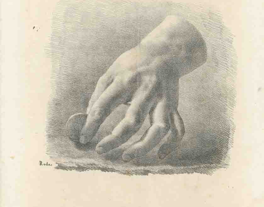 Signatura: «Rodes.» gravat a la pedra litogràfica.