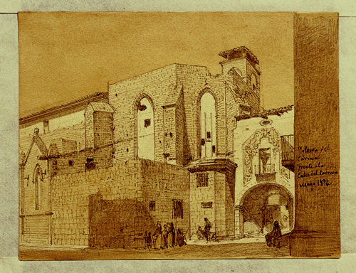 Inscripcions: “Iglesia del/ Carmen/ Frente a la/ calle del Carmen/ Mayo 1874” (a tinta, a la part dreta inf.).