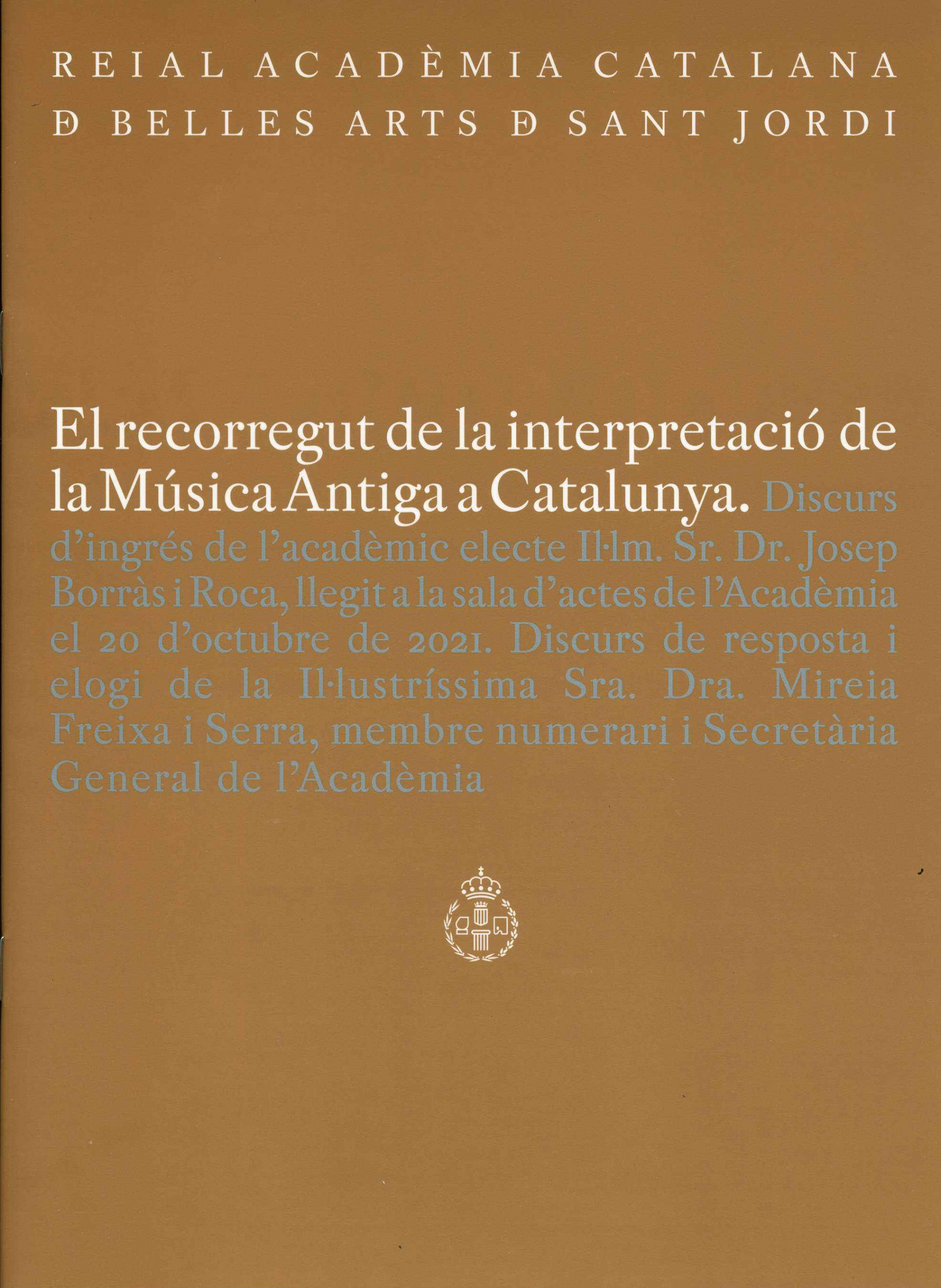 Discurs d'ingrés "El recorregut de la interpretació de la Música Antiga a Catalunya". Inclou discurs de resposta de Mireia Freixa i Serra (22 pàg., 23 cm.). 10,00 €.