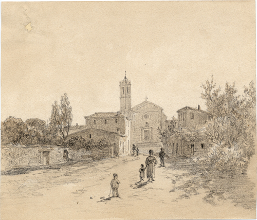 Inscripcions: “Lloret. Parroquia. Agosto 76” (a tinta, a la part inf. esq.); “2657” “9 (encerclat)” (a llapis, al dors). Procedència: Llegat de l’autor (Arxiu RACBASJ, Carta de Lluís Rigalt a Andreu de Ferran i Francesc Miquel i Badia).